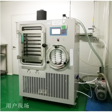 中試凍干機的冷凍干燥就是把含有大量水分物質,預先進行降溫凍結成固體,然后在真空的條件下使水蒸汽直接升華出來,而物質本身剩留在凍結時的冰架中,因此它干燥后疏松多孔體積不變。引起產品本身溫度的下降而減慢升華速度,為了增加升華速度,縮短干燥時間,要對產品進行適當加熱。整個干燥是在較低的溫度下進行的。